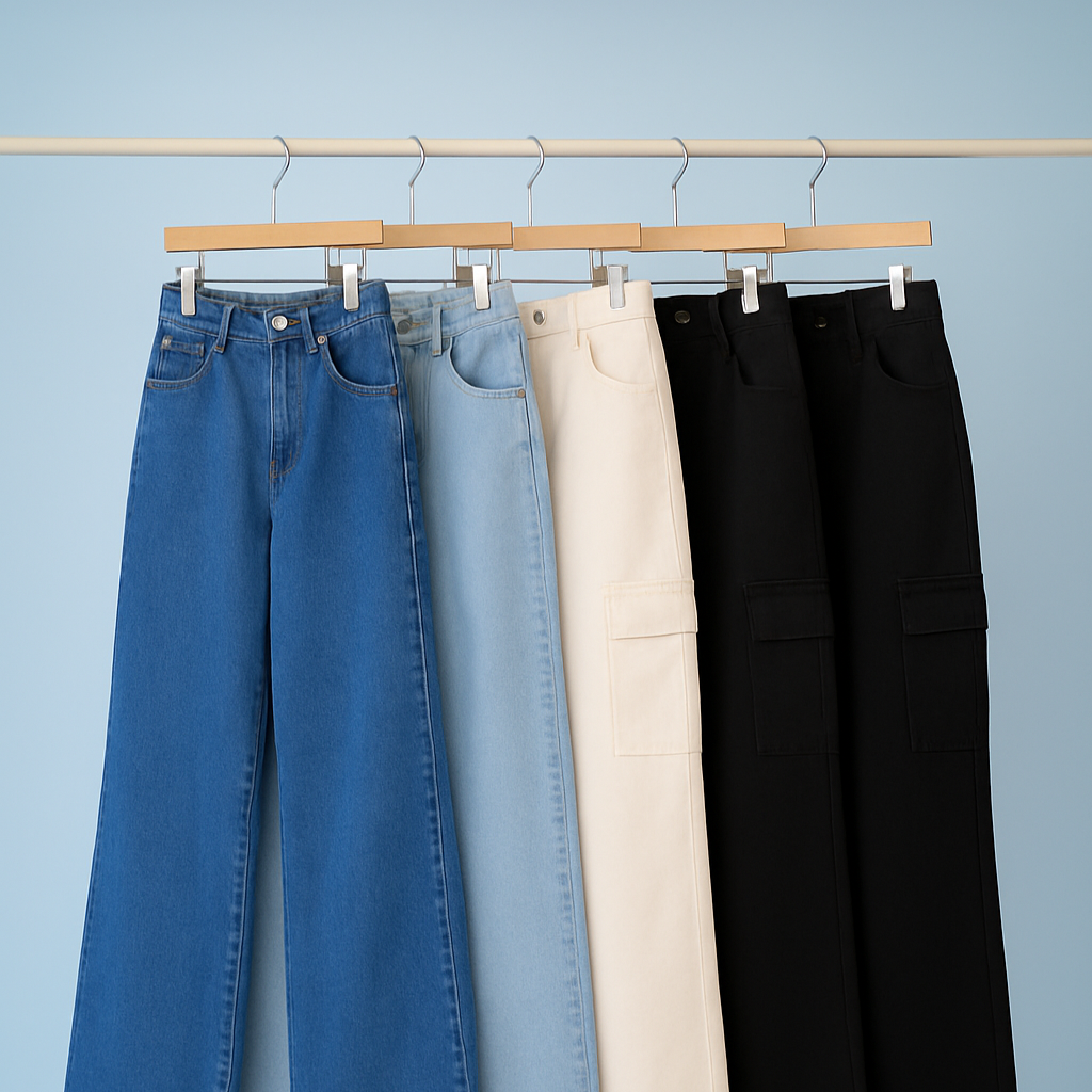 Step into comfort and style with our wide-leg and cargo jeans available in classic black, white, light, and deep blue shades. Perfectly designed for everyday chic.
