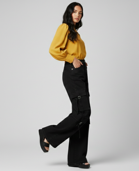Athen Styles – Pure Black Cargo Wide-Leg Jeans