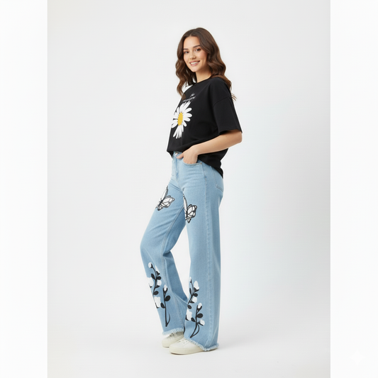 Athen Styles – Pure Black Cargo Wide-Leg Jeans